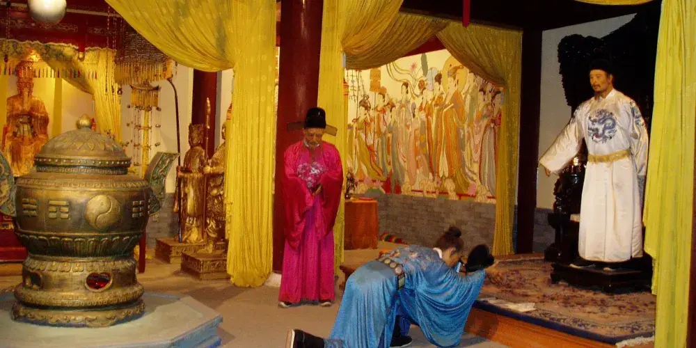 明定陵是萬曆皇帝的陵寢,地面建築的總佈局呈前方後圓形,含有中國古代哲學觀念“天圓地方”的象徵意義。定陵早在萬曆帝生前就開始營建,萬曆十二年(公元1584年)開工,歷時6年方完成,耗銀八百萬兩。陵墓建成時皇帝衹有28歲,直到1620年才正式啟用,該陵墓整整閑置達30年之久。定陵成為十三陵中的三座陵園之一。
