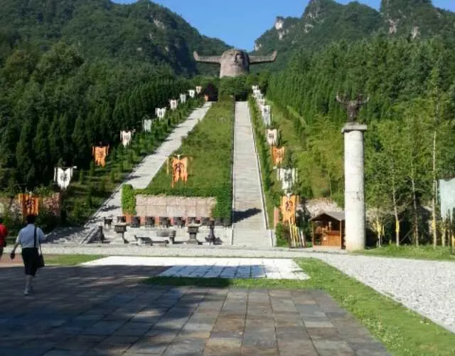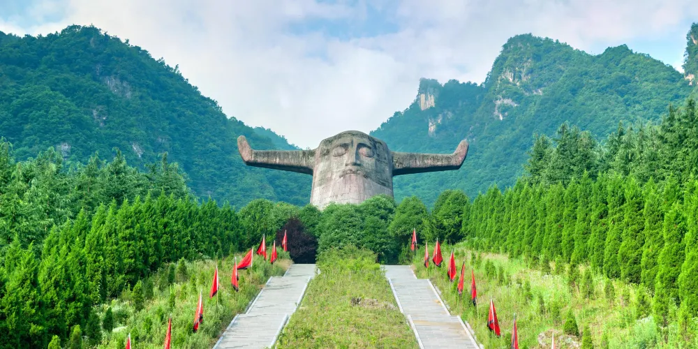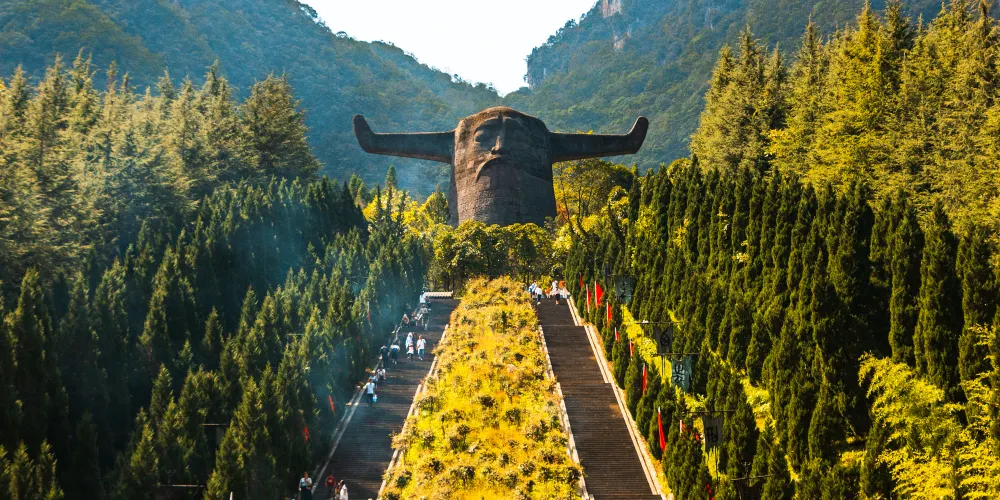 神農壇風景區是為紀念炎黃子孫的祖先炎帝神農氏而建,作為神農架的南大門,也是大多數遊客遊神農架的第一站。祭壇廣場氣勢恢宏,主體建築是一個高21米,寬35米的神農巨型牛首人身雕像,神農炎帝立於蒼翠羣山之間,以大地為身驅,雙目微閉,似在思索宇宙奧祕。景區內分為主體祭祀區、古老植物園、千年古杉、蝴蝶標本館、編鐘演奏廳五大部分,而祭祀區內的地上,是代表天和地的圓形和方形圖案,其中“地”上的五色石又代表着五行學説中的金、木、水、火、土。整個景區青山環抱,風光秀美。