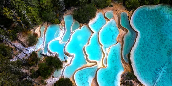在神仙池風景區內,能夠看到高山海子、大面積鈣化景觀和原始森林等景觀。神仙池在藏語中被稱為“嫩恩桑措”,意思是仙女洗浴的地方。景區內有蓮台彩池、雙龍池、青龍海等景點。景區內可以騎馬,還可以漂流。進入神仙池景區,沿著古樸的木製棧道慢慢前行,成片的山坡被乳白色鈣質所包裹,形成奇特的盆狀鈣化池和鈣化坡,池中的水色發出一種獨特的“九寨藍”,很有些不食人間煙火的味道。