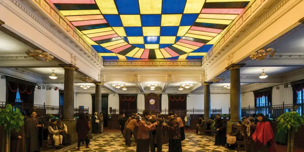 瀋陽金融博物館位於瀋陽市區、張學良舊居的東面,是一座宏偉的仿羅馬式建築,邊業銀行的舊址。博物館內陳列了中國古代各種貨幣和世界各國的貨幣,展示了東北金融業的發展歷程,還以人物蠟像再現了銀行營業廳當年的繁榮景象,十分有趣。走進博物館,彷彿穿越到了二十世紀30時代,衹見大廳內都是人,有的在交談、有的在存錢,一派熱鬧景象。這些都是穿戴着民國時期服裝的蠟像人物,反映了當年銀行營業時的場景,栩栩如生。你也可以充當“人羣”之的一員,拍照合影。穿過大廳開始進入總裁辦公室復原陳列室,從這裏開始依次進入每個展廳參觀。各個展廳分別陳列了戰國時代、清代、民國時期和現代的各種貨幣實物,還可以看到世界各國貨幣、以及專門的金屬錢幣陳列,同時還有人民幣及假幣展覽,教你怎麼識別假幣。而後一個展廳被佈置成模擬的證券交易所,讓你體驗置身於金融中心的感覺。除了貨幣展示,各個展廳還以豐富的圖片和文字讓你瞭解到東北金融業、中國證券業的發展歷程。展廳順序基本都為單向行走,建築內部格局有點複雜,不過好在展廳間都有方向標識,也都有工作人員可幫助指引。