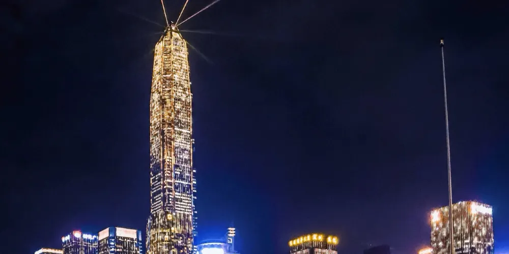 平安金融中心是世界第五、中國第二高的摩天大樓。其FREESKY雲際觀光層,位於世界第五高樓平安金融中心116層,傲居深圳新地標547.6米海拔高空,擁有懸空玻璃觀景台,可360°鳥瞰深圳四方八面不同景觀與城市風貌。涵蓋透明觀景區、VR互動體驗區、鏡面迷宮、光影隧道、深圳奇蹟等多個功能空間。以先進的智能多媒體設施,展示具有豐富深圳特色的年輕文化,展現深圳改革開放以來的蓬勃發展,可觀摩深圳的歷史變遷與城市風貌。遊客可乘坐多媒體觀光電梯,只需約55秒即可到達116層547.6米雲端,以360度的視野,盡收深港兩城風景。感受阻尼器黑科技之光,體驗極限綠景拍智慧之美,誠邀四海賓朋登上深圳新高度,遠眺近覽山野與城市的俏麗盎然,將華南版圖盡收眼底。