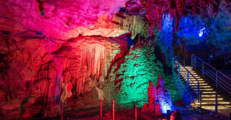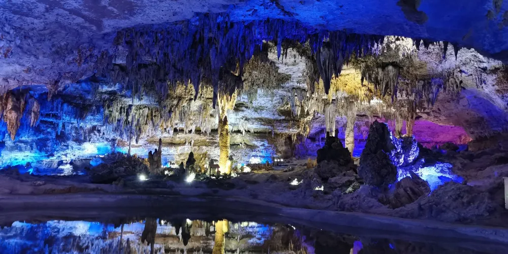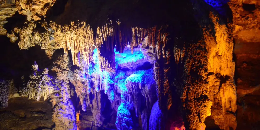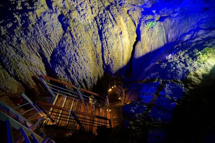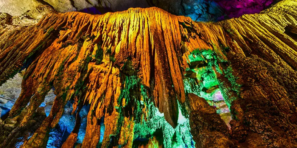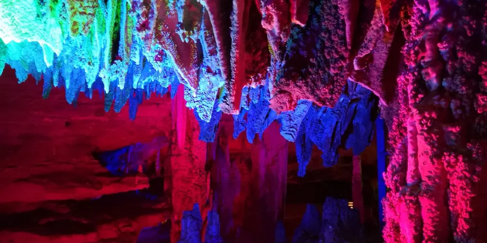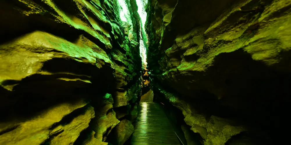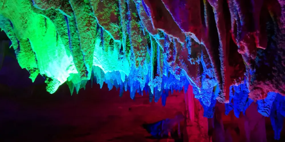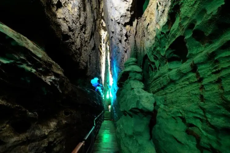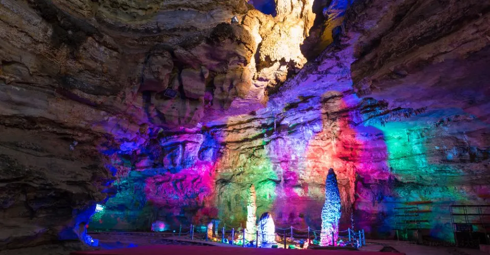 十二背後·地下河谷景區,擁有豐富的地下岩溶地貌。「國內地下河谷」、「地下梯田奇觀」,並稱為「雙河谷四絕」。地下河谷,石壁造型多樣、紋路美艷,河水碧綠深幽,彷彿世間偉大的藝術品。天坑四周直矗的懸崖峭壁上植被茂盛,天坑天瀑從坑頂直瀉而下,氣勢恢宏。坑底溪水涓涓、巨大的原生芭蕉林和成片的刺竹林交互生長,風景如畫。旱洞內巨大的「地下梯田奇觀」規模之大令人稱奇。遊客還可以在洞內乘車做體驗性遊覽,在歷經4億年形成的雙河石膏洞中穿行,完成一次時空穿梭之旅。