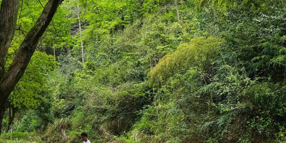 由馬鞍峯繼續往前,是攬船峯和香爐峯,可以遠觀,也可以順着小路登頂攬船峯後返回。回程路上可原路下山,也可選擇通往千丈幽谷的岔路,走過小木橋,進入千丈幽谷景區。千丈幽谷大概一兩小時就可游完,有竹林、溪水,還有許多峭壁和怪石。因為是武俠大片的取景地,景區裏還有射鵰草堂、卧龍山莊等人工景觀,可以一邊遊賞一邊回味武俠劇中的情節,會有種身臨其境的感覺。千丈幽谷北側的重陽宮是一處影視拍攝基地兼道觀,遊覽時還可能碰到劇組在此拍戲。這邊距離雅莊村大約兩三公里。