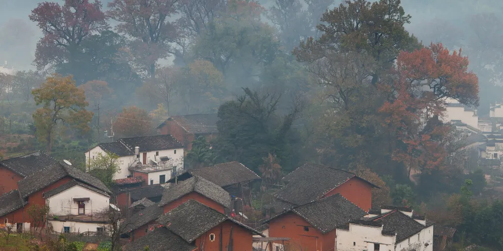 石城程村的精彩在深秋,楓葉火了,晨霧懸掛在樹腰,紅葉在晨霧中若隱若現,加上早晨村民的炊煙、燒油茶殼的煙,構成瞭如夢幻般的仙境。每年一到11月中下旬,這裡就成為了無數攝影愛好者的天堂。拍完石城程村的日出晨曦後可以到村里轉轉。