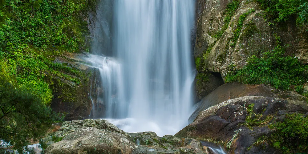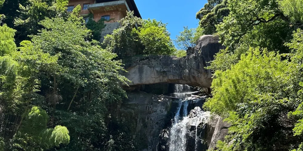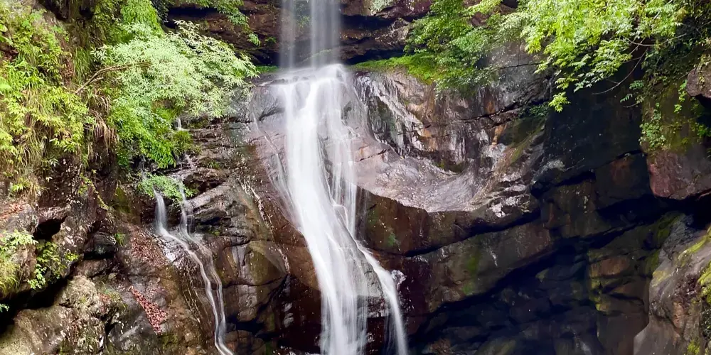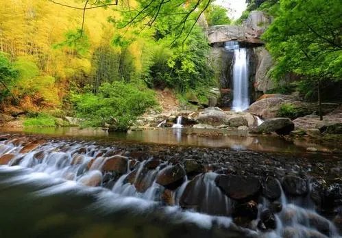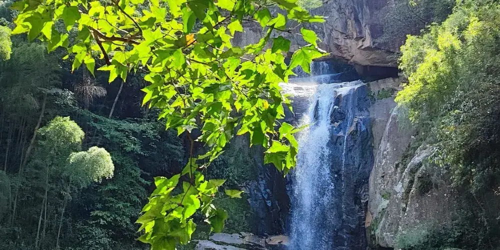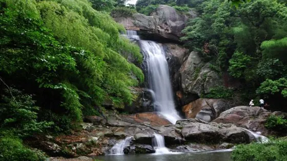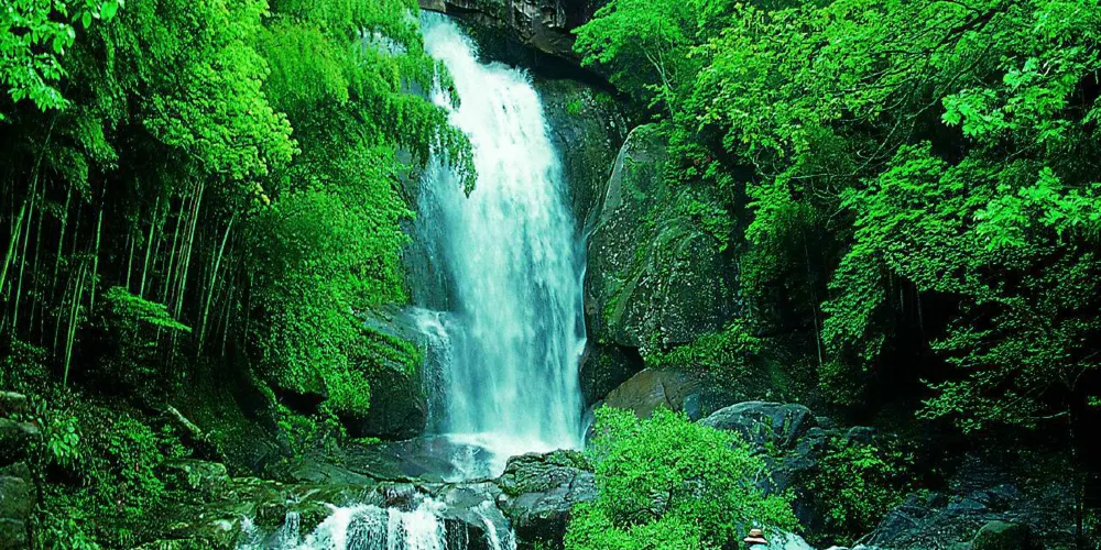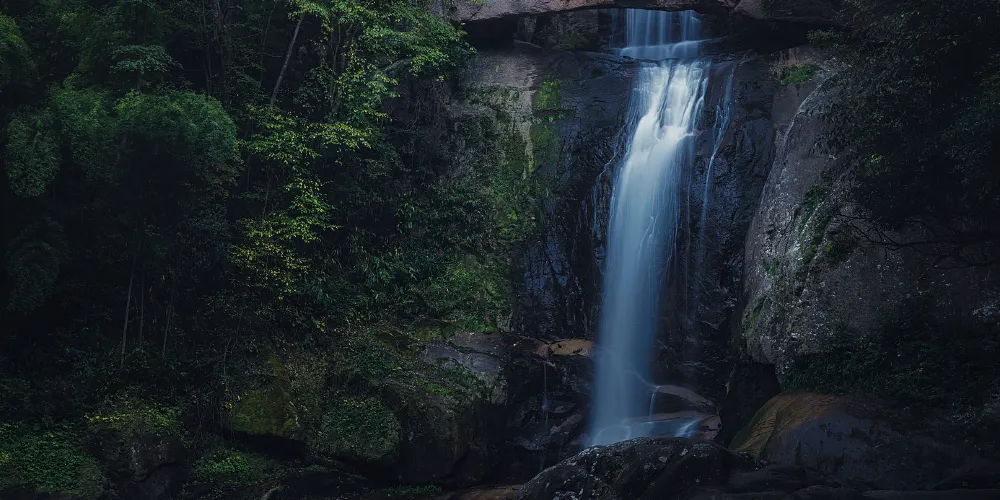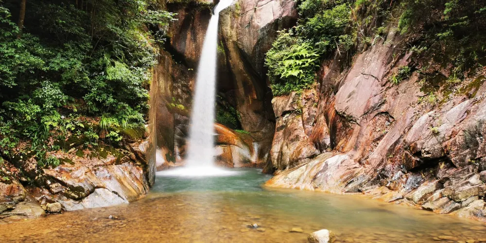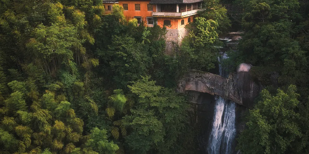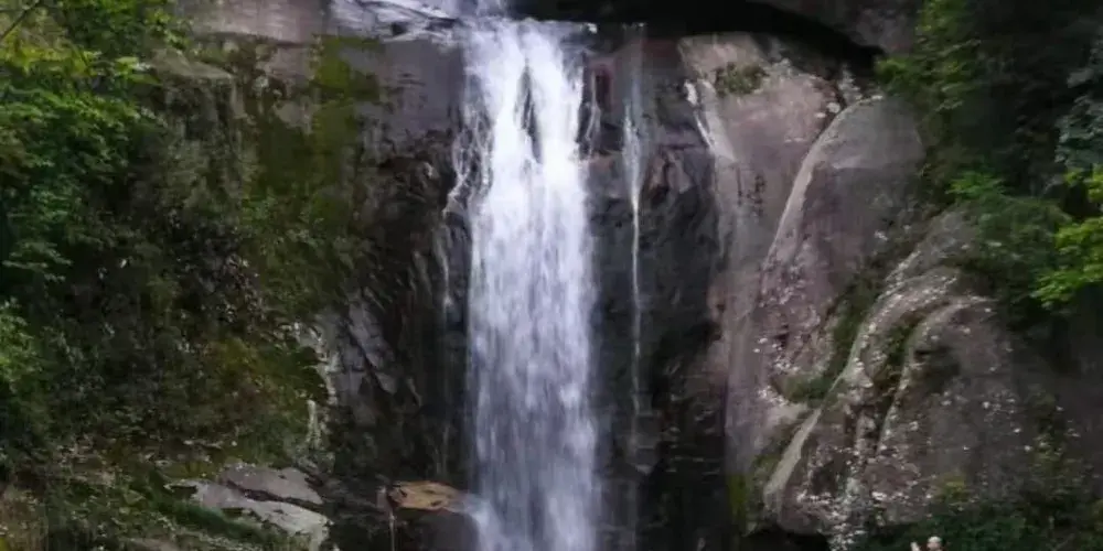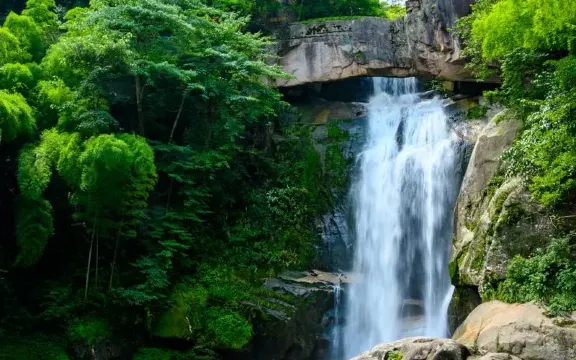 石梁飛瀑又稱“石梁雪瀑”,是江南名山天台山眾多瀑布中的一處。在崇山翠谷之中,一道巨大的石梁優雅地跨在山間,瀑布從微微拱起的石梁飛流而下,搭配出風格獨到的美好構圖。又因為徐霞客曾不止一次來此探訪,這裡也成了一些遊人追隨霞客足蹟的常訪地。