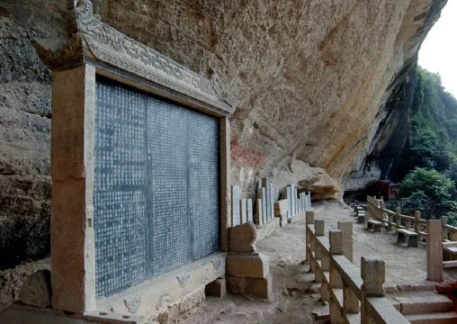 石門洞又稱龍王洞。在宜昌縣城西南約25公里的筐覆山。因洞口原有兩石如門,故名。石洞中一水潭,約有14平方米,水清如鏡,不盈不涸,冬温夏涼,有“龍潭仙揪”之稱。昔日洞內有佑聖宮、卧雲樓、觀音寺、龍王殿等建築,被譽為“桃源仙靈之窟宅”。歷代騷客至此作詩題詞銘之於石頗多。現古建築頹廢,尚有清代學者王柏心所寫《遊石門洞記》、書法家鄧石如所書《列岫叢青》以及同治年間(1862-1874)《重建石門洞靈濟殿並各殿啟》等一批碑刻,立於潭側。其中《列岫叢青》碑,字跡遒勁沉雄,尤為遊人讚賞。洞外,山石褶皺,顯蒼泛青,古色盎然,頗富異趣。