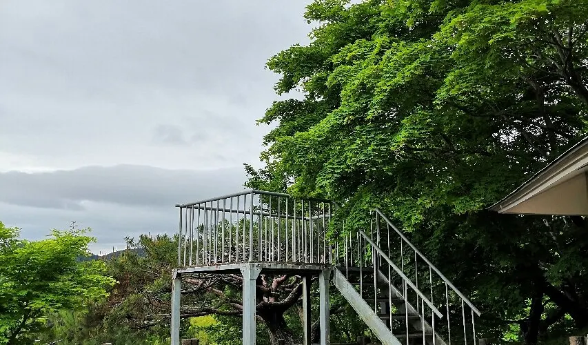 庭園布滿苔蘚和岩石,獨具特色。