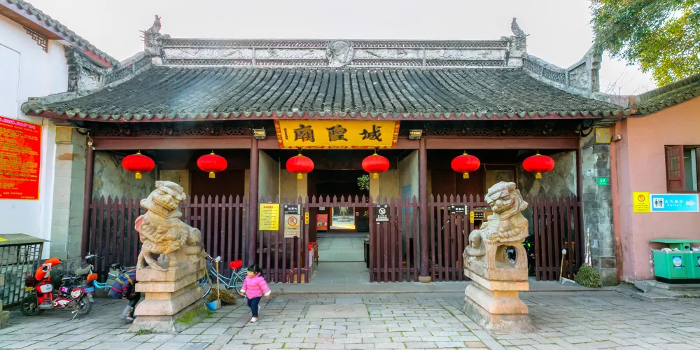朱家角城隍廟是青浦城隍行宮,乾隆二十八年(1763年)徽州人程履吉謀遷今址。城隍廟座東朝西,正門臨河有一垛照牆,兩邊為東西轅門,正前有一對石獅,懷抱繡球,線條柔和。廟中間為頭門、戲台、大殿,兩側為廡,旁有小曲溪,桃李楊柳隨處可見,佈局雅緻。園內亭台樓閣,假山水池,古稱“城隍廟十二勝景”,後經修復重現往日風采。