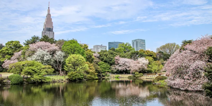 新宿御苑是位於市中心的大型公園,擁有日本庭園和法國庭園景觀。