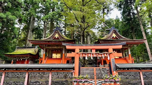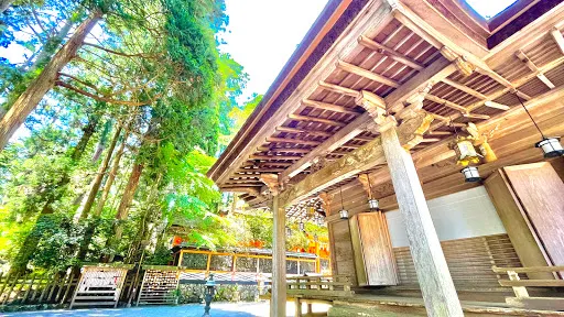 大師在弘仁10年(819年)向鎮守高野山的天野社地主神勸請。社殿為三重,一宮為丹生明神,二宮為高野明神,三宮為十二王子及百二十伴神。丹生、高野明神社的構造形式為春日造,總社稱為三間社流見世棚造,兩個皆為檜皮葺的屋頂。現在的社殿在文祿三年(1594年)再建。