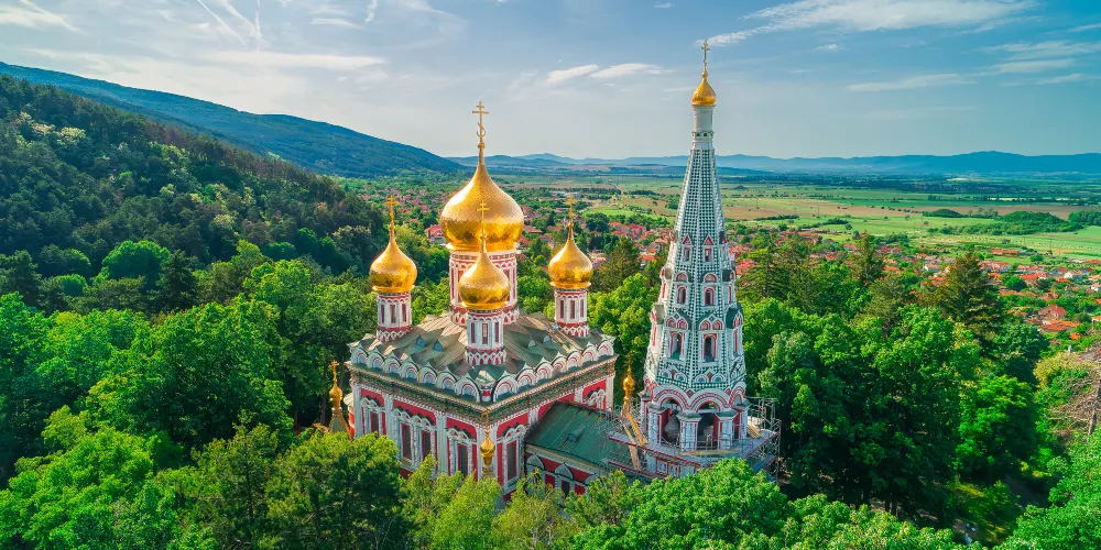 教堂原為紀念耶穌誕生由當地東正教會在17世紀建立。教堂有着金色的洋葱頭圓頂,是典型的東歐式東正教風格建築。教堂旁邊的鐘樓高達53米,裏面有一個重大12噸的大鐘。後來希普卡戰士的石棺仍放置於教堂的地穴中,人們為紀念他們把教堂稱為希普卡紀念堂。