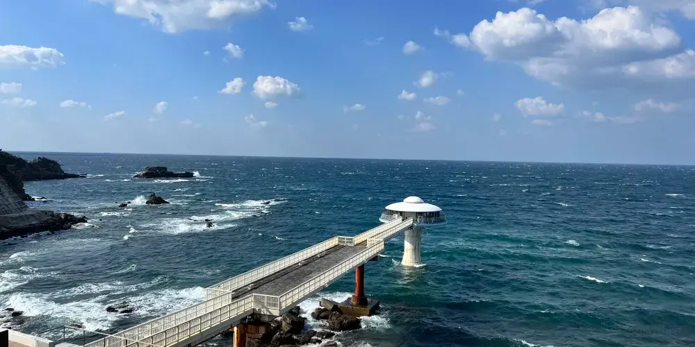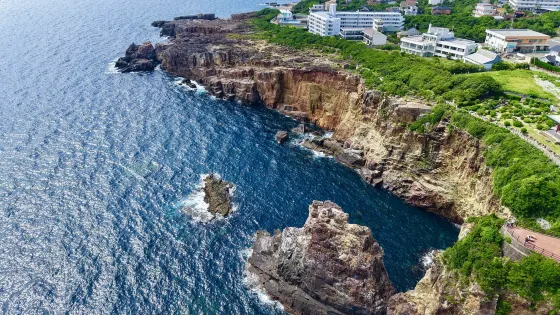 遊客可以沿著設有護欄的步道漫步,安全地欣賞懸崖的壯麗景觀。三段壁洞窟是景點的亮點之一,遊客可以透過電梯下到洞窟內部,探索這個由海浪侵蝕而成的天然奇觀。洞窟內設有燈光照明,方便遊客觀賞岩壁的獨特紋理和形狀。三段壁也是觀賞日落的理想地點,傍晚時分,夕陽映照在海面上,形成一幅美麗的自然畫卷。