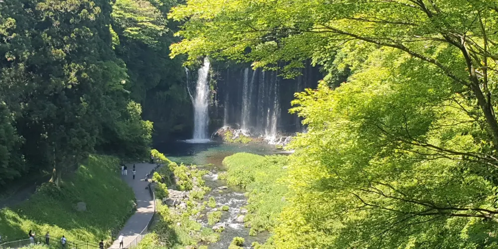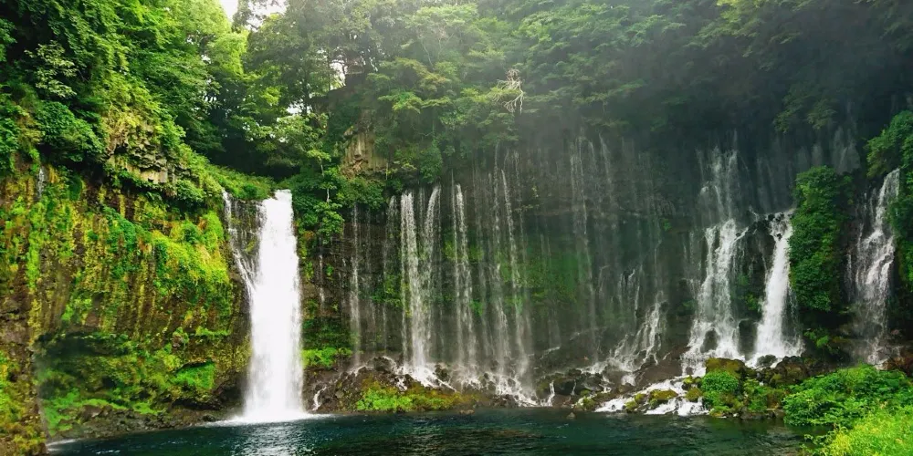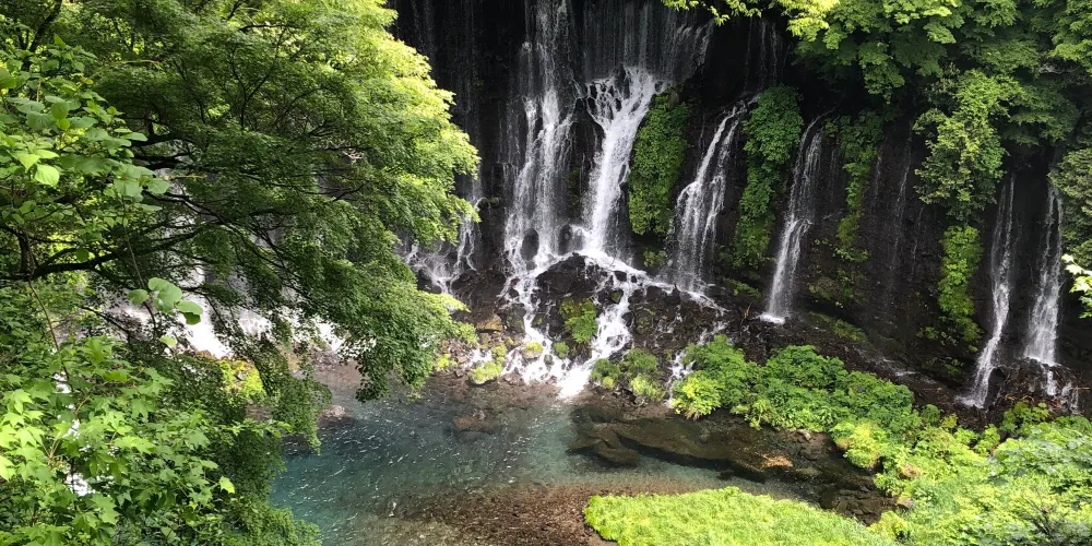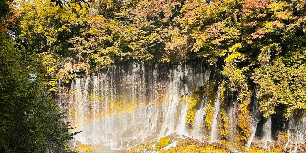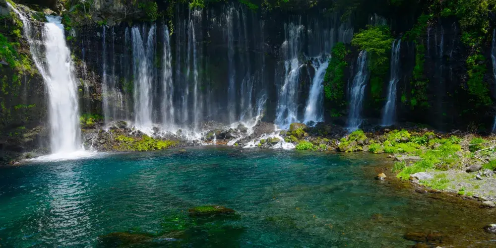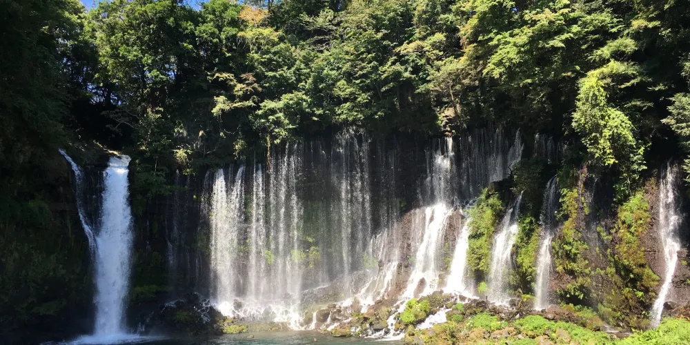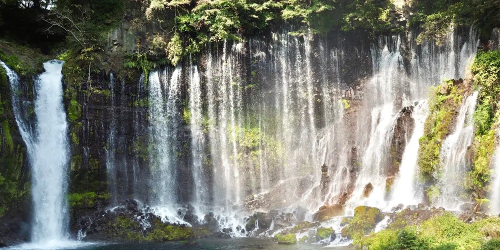 白絲之瀧坐落於富士山西側,其流水皆來自富士山上融化的冰雪。由數百條如絲般的小瀑布組成美麗的白色水簾,因而得名白絲之瀧。白絲之瀧是一座非常寂靜的瀑布,落差20米,寬達200米,是日本屈指可數的名瀑。