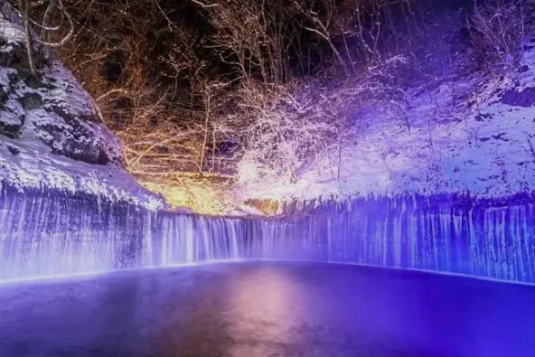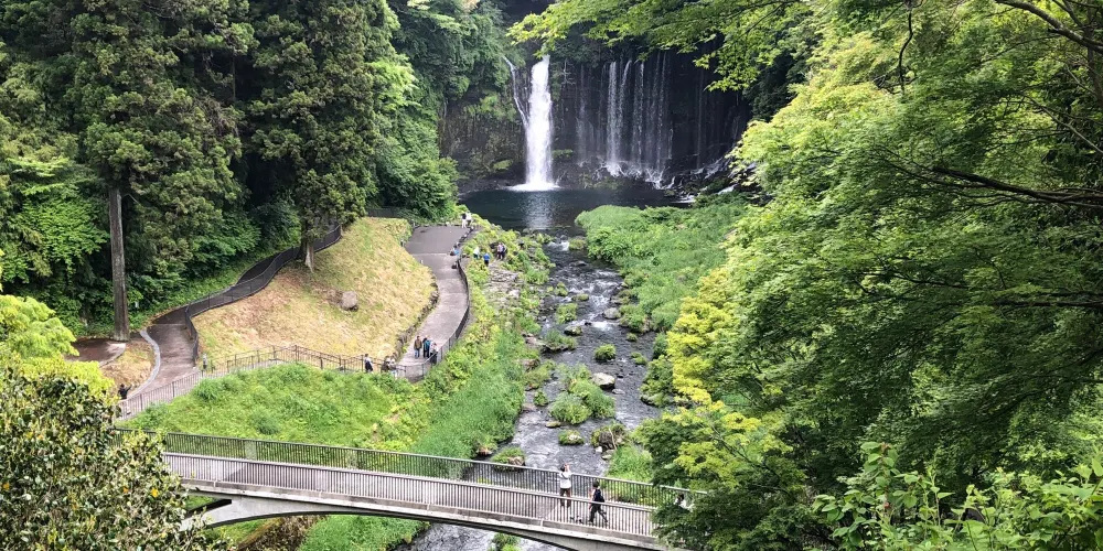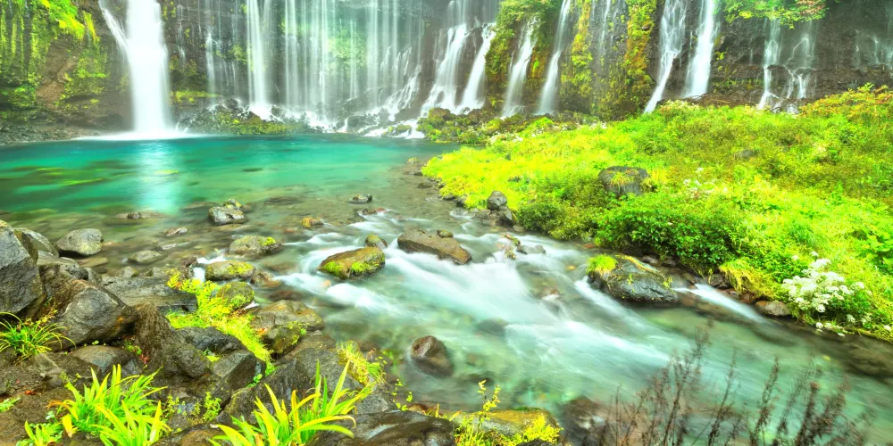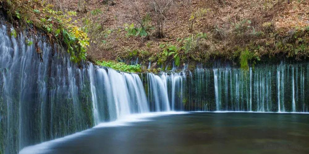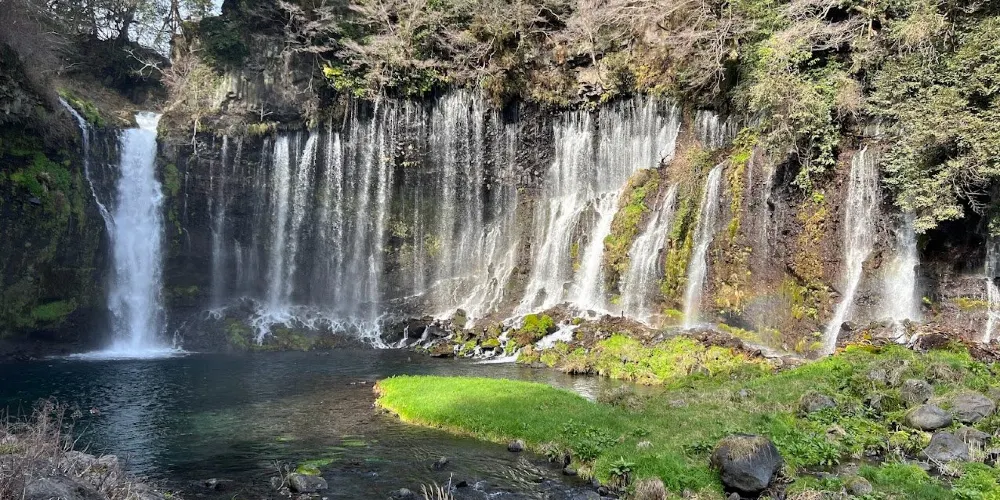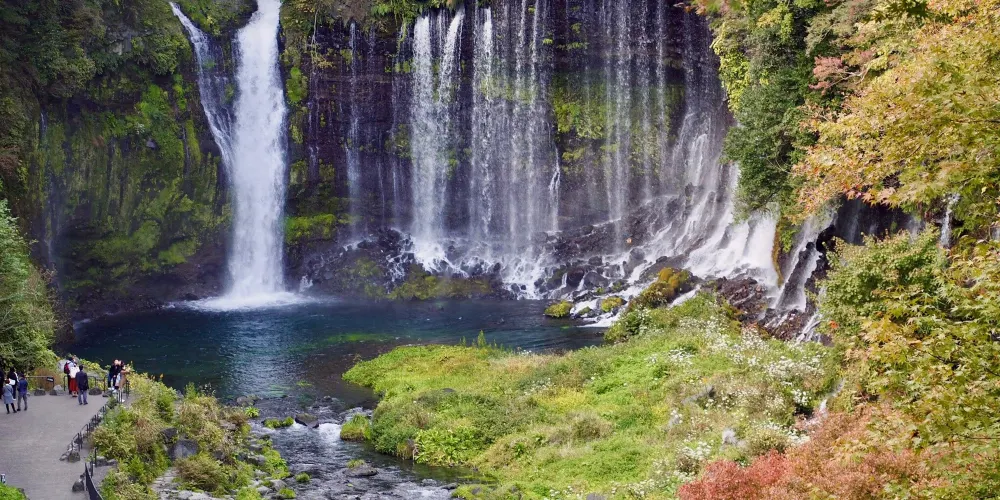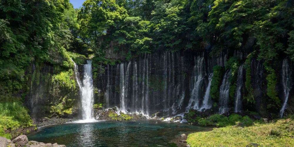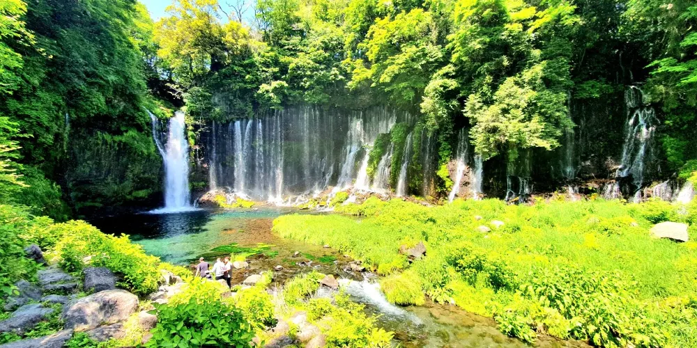 白絲之瀧坐落於富士山西側,其流水皆來自富士山上融化的冰雪。由數百條如絲般的小瀑布組成美麗的白色水簾,因而得名白絲之瀧。白絲之瀧是一座非常寂靜的瀑布,落差20米,寬達200米,是日本屈指可數的名瀑。