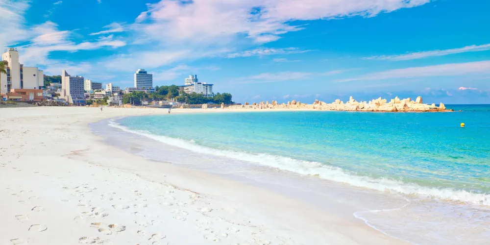 白良浜海濱浴場是位於日本白浜附近的沙灘。這裡的沙質和水質很棒,沙灘細白,海水蔚藍,平常遊客不是特別多。夏季是這裡游客很旺的時候,潛水、沙灘排球、沙灘摩托和衝浪是這裡很好的水上娛樂項目。喜歡海邊玩耍的遊客可以來此遊玩。