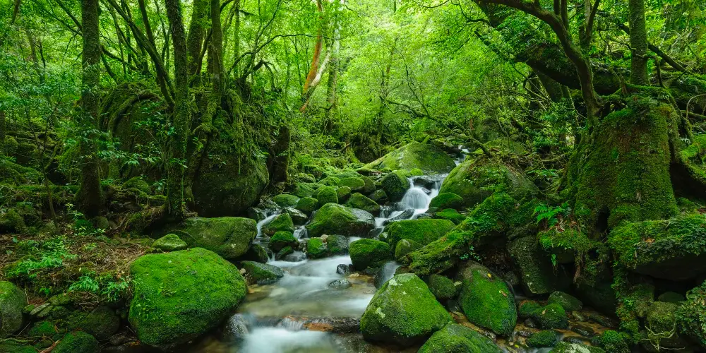 白谷雲水峽是宮崎駿《幽靈公主》中幽靈公主居住的森林,十分適合徒步。白谷雲水峽是流動於屋久島北部宮之浦川的支流白谷河的溪谷,雨量豐富,覆蓋著茂密的原生森林。這裏分為彌生杉、奉行杉、太鼓巖三條主要的遊覽路線,可根據自己的需求喜好選擇。