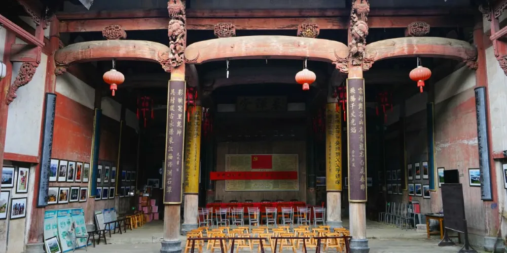 石潭村是深藏於歙縣東北山區的數十個古樸村落之一。從石潭村越往裡走,風景越好。村與村之間僅靠一條羊腸小道相連,當春季來臨時,漫山遍野的油菜花、梨花相繼盛開,是真正的世外桃源。石潭古村還保留兩座古祠堂。其中一座堪稱古祠堂典範——敘倫堂,其建於明嘉靖年間,距今已有400多年曆史,有房梁100根,為國內建築史上奇觀(除北京故宮外沒有第二家),號稱“百梁廳”。
