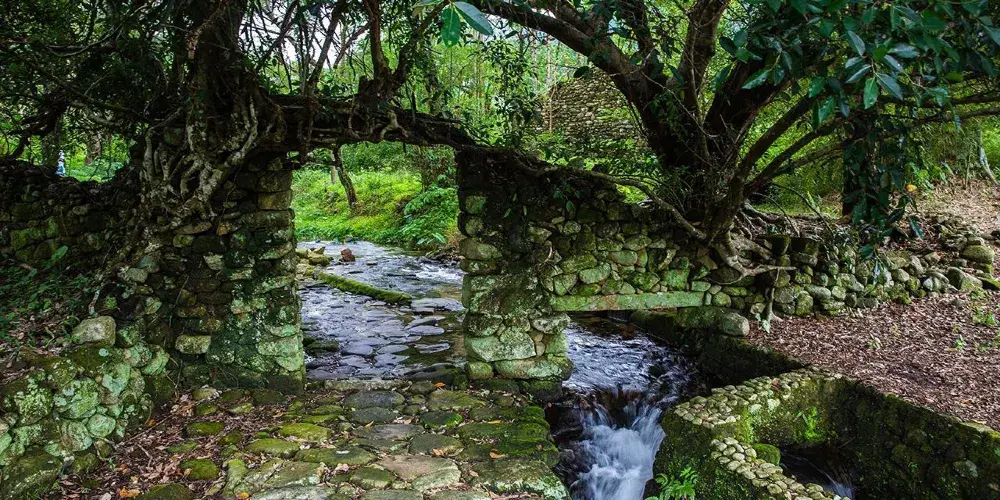 石頭村以別具一格的石頭古建築著稱,房子是用石頭建的,路是用石頭鋪的,塘基是用石頭砌的,村邊的水渠是用石頭築成的,村子圍牆、菜園地也是用石頭壘成的。這裡曾發現4500多年前人類所使用的生產工具的石器,也發現1000多年前的唐代中期少數民族曾活動過的遺迹。
