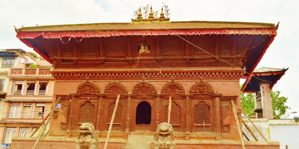 塔萊珠女神廟建於1549年,為一座三重簷鎦金寶頂廟宇,是加德滿都最高的寺廟建築,具有典型的尼泊爾建築風格。塔萊珠·巴瓦妮女神是馬拉王朝最受尊崇的女神,被馬拉國王奉為家神,因此塔萊珠女神廟比一般寺廟建得高大。
