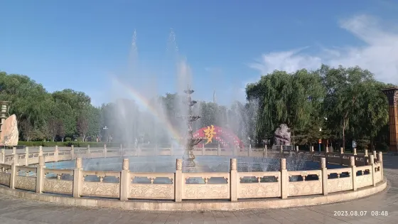 市政廣場位於甘肅省酒泉市,佔地面積廣,建有大型長方形音樂噴泉和旱噴泉。噴泉開啟,水花四濺,美輪美奐。