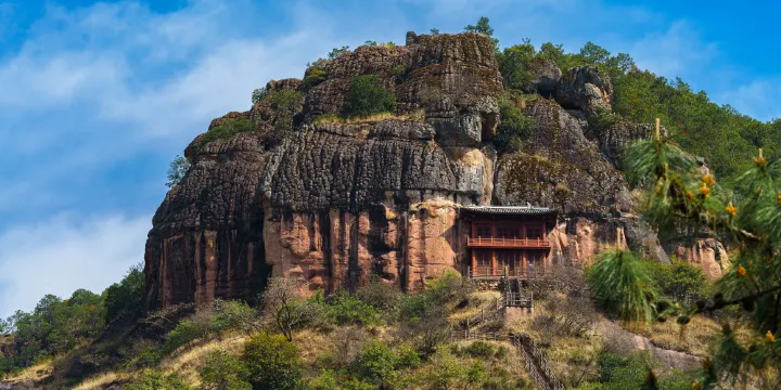 石鐘山是石寶山南部的一座支峰,因山上有石像鐘而得名。這裡峭壁嶙峋,矗立著奇岩異石,被當地人稱為“活不耐煩松”的扭松遍佈於山間幽穀。在南山坡上,翠竹環抱著一群古色古香的屋宇,那便是石鐘寺。寺裡有一巨石,形如倒扣的巨鐘,故以石鐘山為名。素有南國瑰寶之稱的劍川石窟群就雕鑿於此。