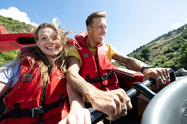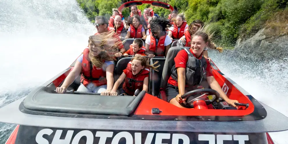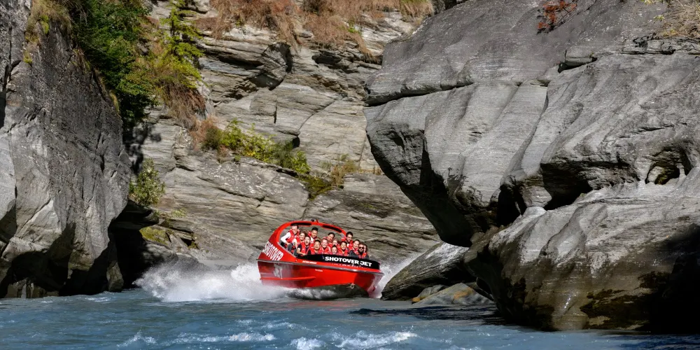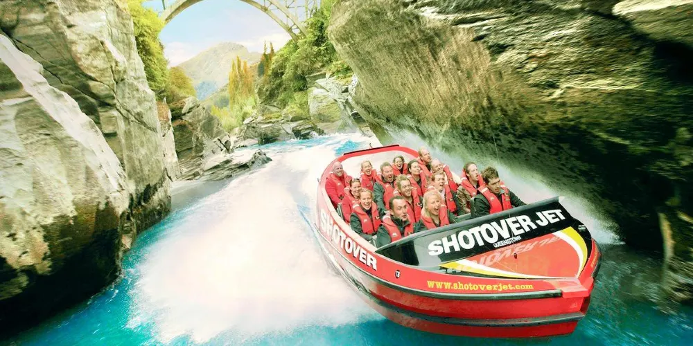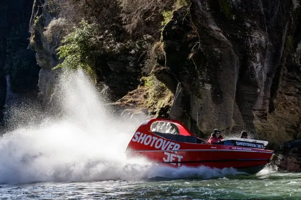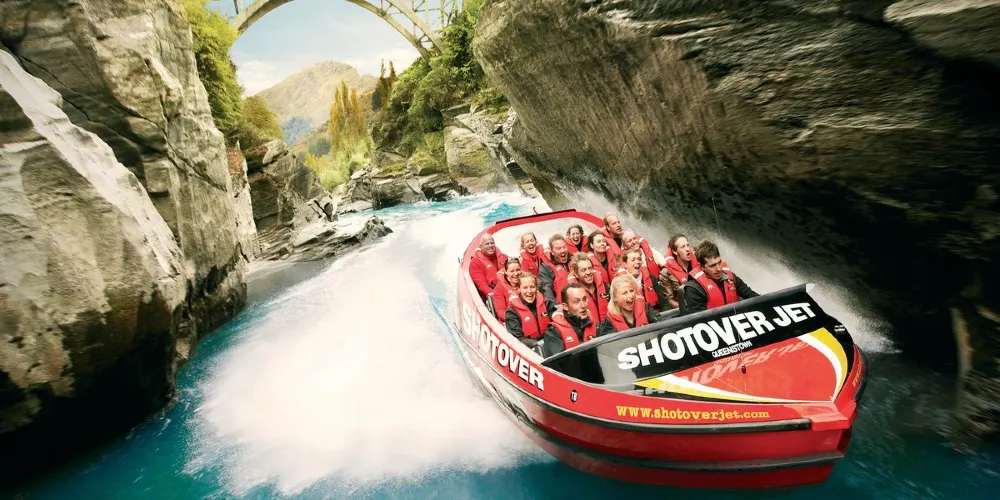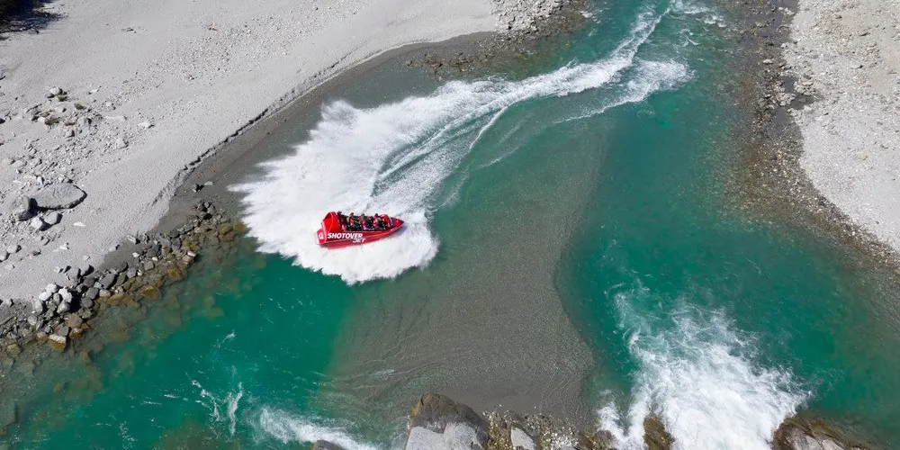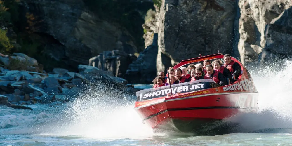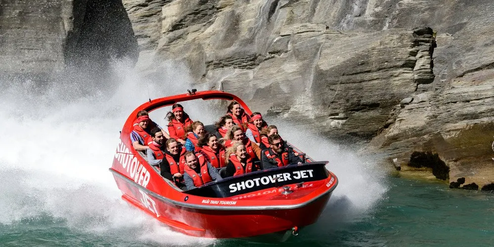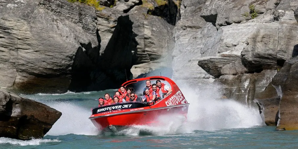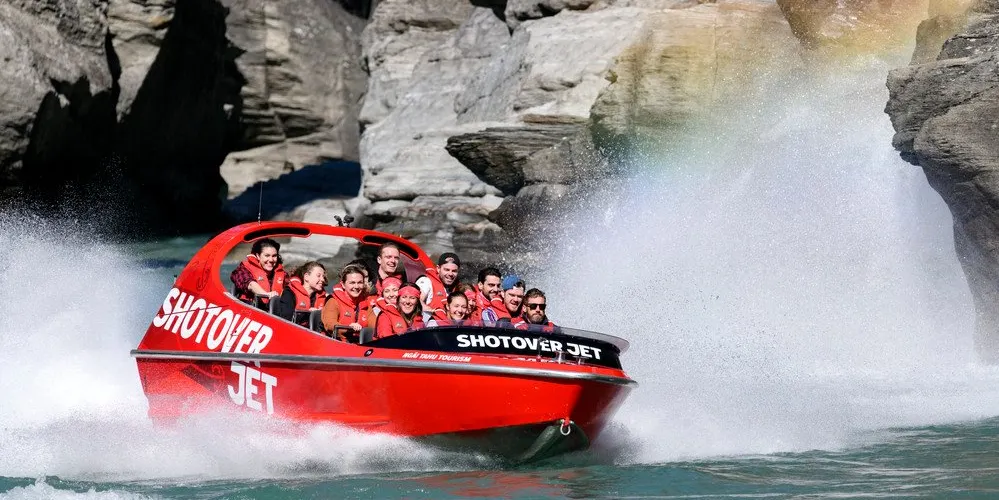 ShotoverJet 位於著名的沙特歐瓦峽谷,也是穿越河流的噴射快艇,自 1970 年以來已接待了 300 萬遊客。可容納14 名乘客。這艘高速、機動性強的快艇由兩台 350Mercruiser V8 增壓引擎提供動力,可提供 700 匹馬力,並由兩架 Hamilton 212 噴射機推進、轉向和控制。這些獨特的裝置和設計讓快艇能夠以每小時85公里的速度馳騁在水深僅10公分的河流上,讓您現場體驗獨特且高難度的360度轉圈。從踩下油門的那一刻起,當您以極快的速度在水中巡航時,腎上腺素就會達到峰值,感覺就像船離開了水面。清澈的激流急流撞擊著險峻的岩石,熟練的職業車手將高速穿越沙特歐瓦河的各種急流,對著岩壁表演各種特技,並以85公里的高速行駛。一個艱難的360度轉彎。