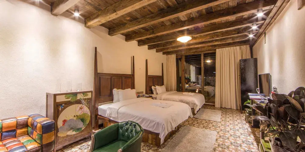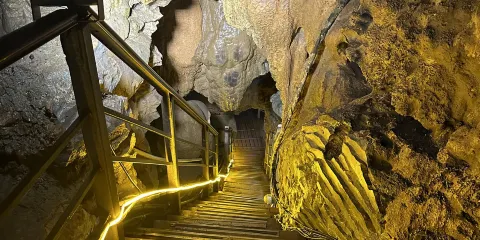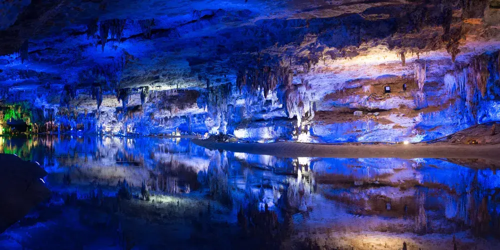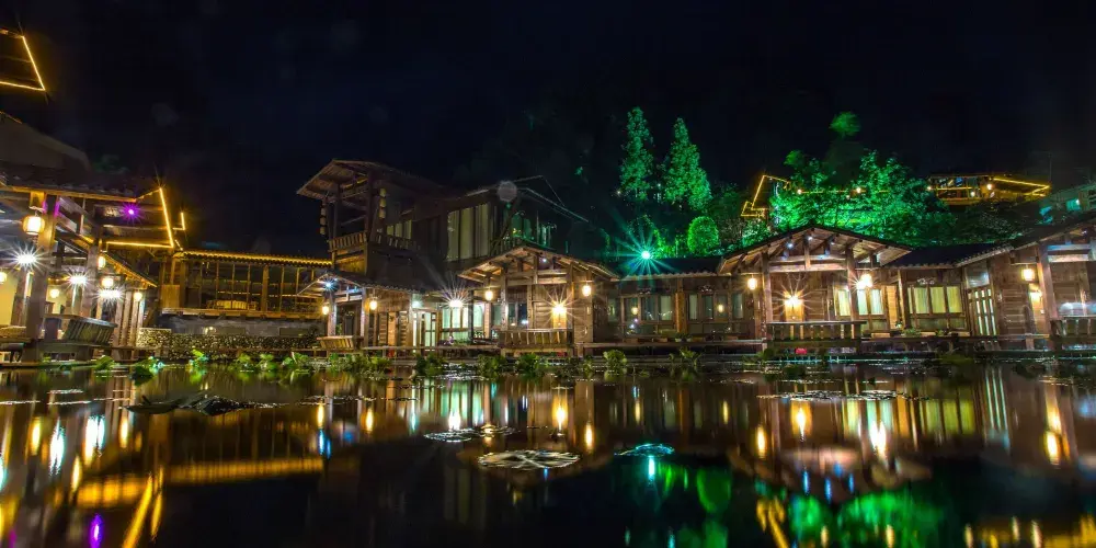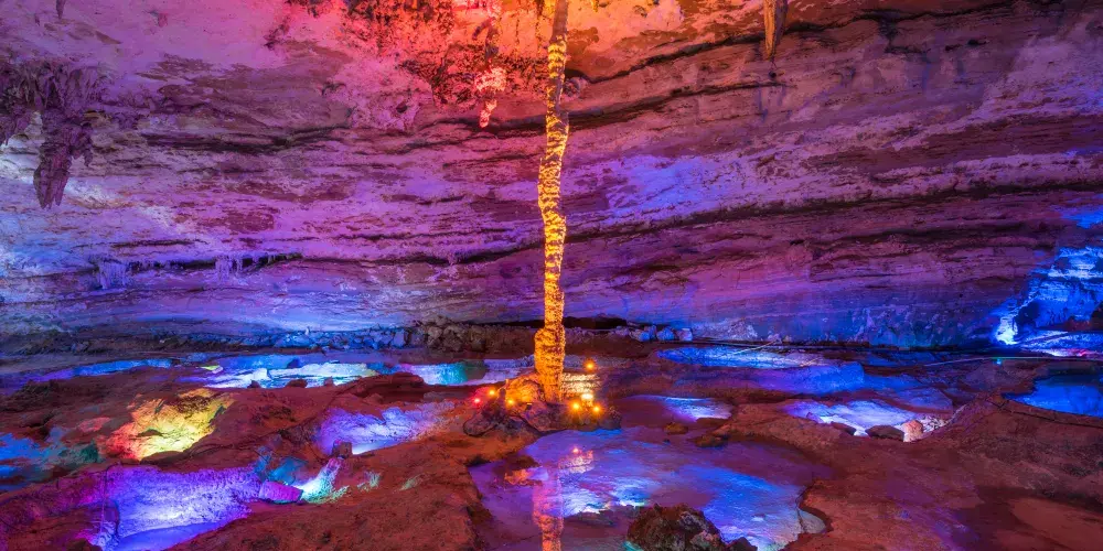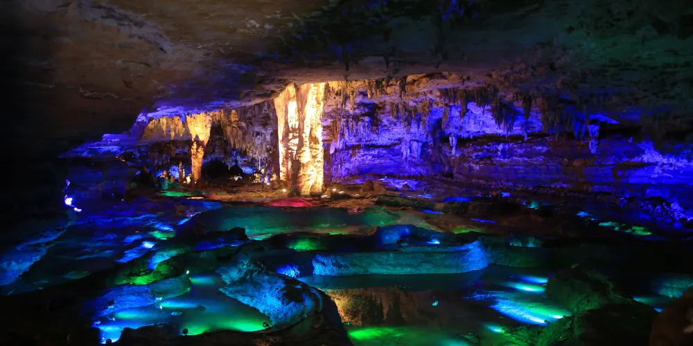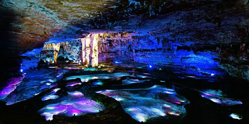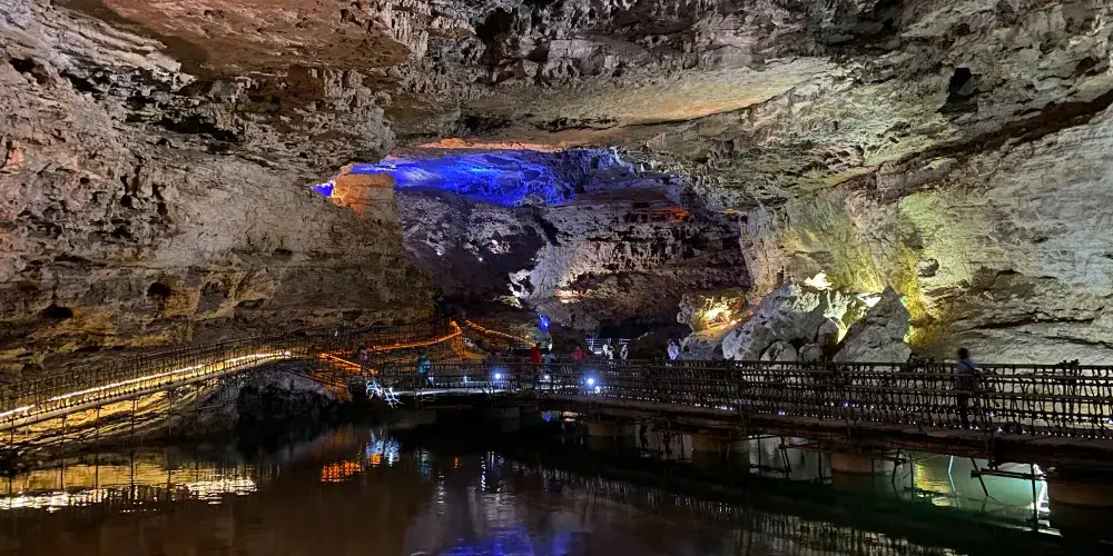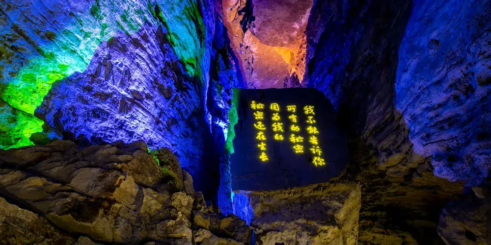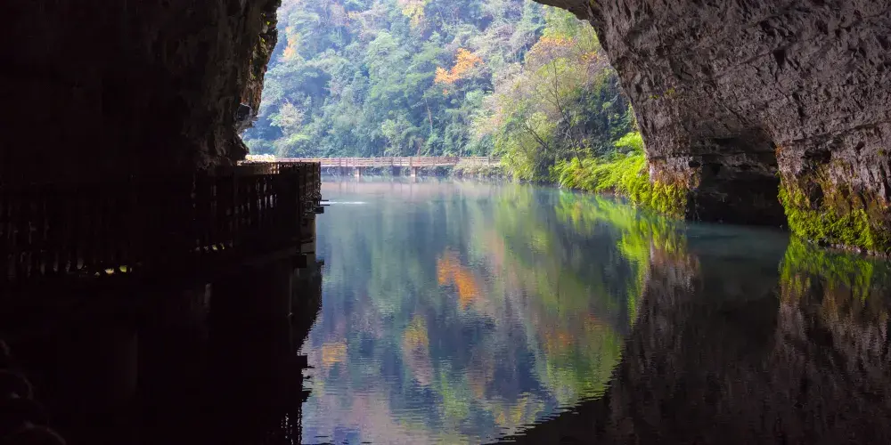 十二背後·地下河谷景區,擁有豐富的地下岩溶地貌。「國內地下河谷」、「地下梯田奇觀」,並稱為「雙河谷四絕」。地下河谷,石壁造型多樣、紋路美艷,河水碧綠深幽,彷彿世間偉大的藝術品。天坑四周直矗的懸崖峭壁上植被茂盛,天坑天瀑從坑頂直瀉而下,氣勢恢宏。坑底溪水涓涓、巨大的原生芭蕉林和成片的刺竹林交互生長,風景如畫。旱洞內巨大的「地下梯田奇觀」規模之大令人稱奇。遊客還可以在洞內乘車做體驗性遊覽,在歷經4億年形成的雙河石膏洞中穿行,完成一次時空穿梭之旅。