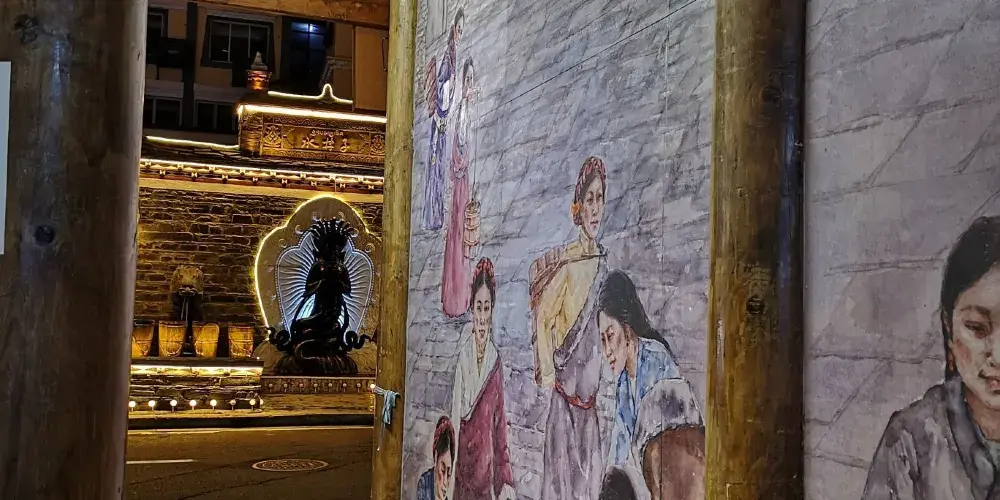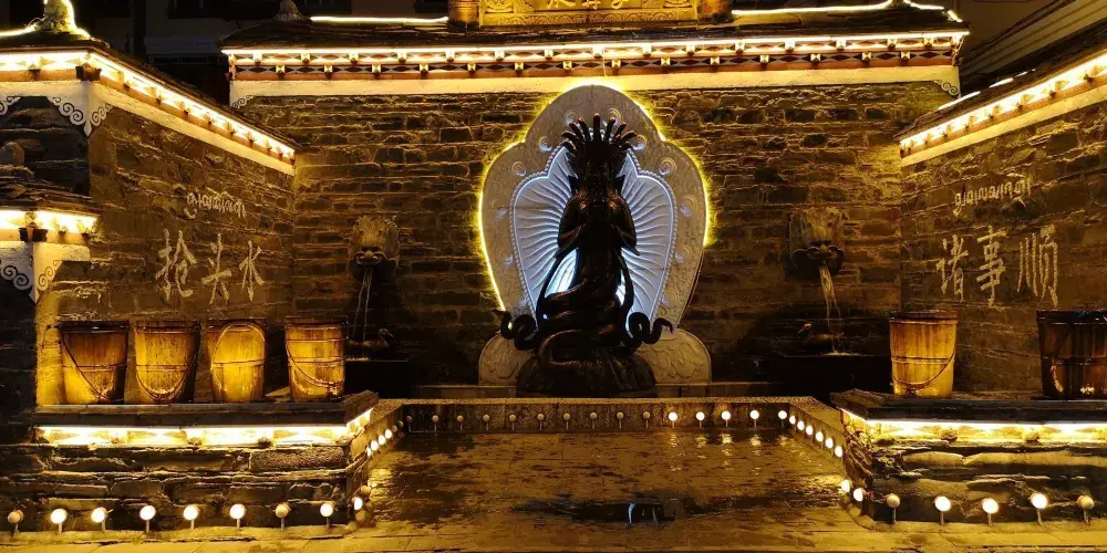 晚上的廣場熱鬧非凡,市民們會聚集在一起跳鍋莊,圍成兩三個圈,舞蹈具有藏族風情,動作巧妙地發揮了藏族服飾的優勢。每逢佳節或重要時刻,這裡還會舉辦盛大的民族歌舞表演,演員們身著華麗的傳統服飾,用歌聲和舞蹈傳遞著真摯的情感。遊客可以在廣場上漫步,欣賞周圍的自然美景、觀看藏族舞蹈表演、參與藏族傳統手工藝品製作等,親身體驗藏族音樂和舞蹈的魅力。