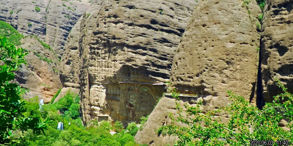 拉梢寺又名大佛崖,始建於北周明帝武成元年(公元559年),歷史悠久,主景點是位於山崖絕壁上的一副巨幅浮雕,周邊還有彩繪壁畫,工藝古樸,圖案精美。