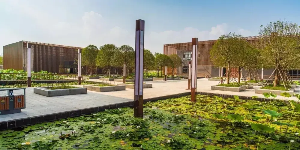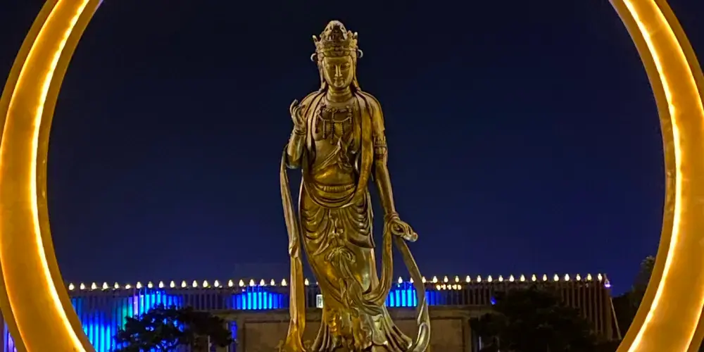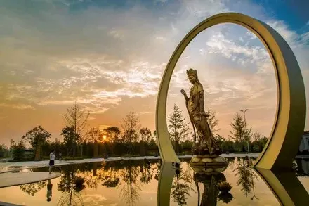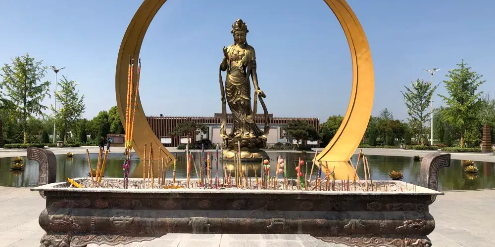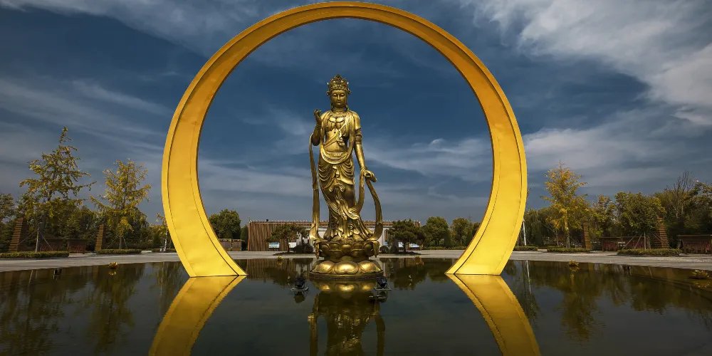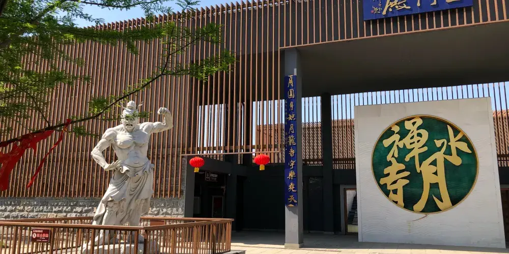 中國.睢寧水月禪寺(始稱浮屠寺)則位於睢寧西郊碧波蕩漾的水月湖畔,寺院佔地300餘畝,現為國家AAAA級景區。該寺始建於東漢末年,幾經戰火,歷盡劫難,代有興衰。禪寺於2011年4月重建,2013年10竣工,禪寺建設以“得風潤水,古典佈局;簡約建築,禪意空間”的規劃理念為核心,建築格調獨具匠心,顛覆了人們對於佛教建築固定的思維模式,設計將佛教元素與建築藝術達到了完美結合,表現手法較為獨特,功能和佈局更為合理,實現了佛教元素與現代建築藝術的完美結合,創造出國內獨具匠心的佛教活動場所。因寺院周邊臨水,又因佛學所稱因、果、圓、缺的信仰似月亮,且寺廟突出是水月觀音文化,故寺院命名為“水月禪寺”。2015年11月,在新加坡舉行的世界建築節(World Architecture Festival)被評為全球九大宗教建築之一。