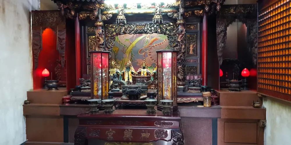 另外,該廟還有一個特色就是除了正殿的媽祖稱為大媽外,還配有所謂的“二媽”、“三媽”的媽祖神像,造型僅為大媽的一半,臉色為粉紅色,兩眼張開,與媽祖神像眼瞼呈下垂狀不同,有時間不妨也參觀一下。