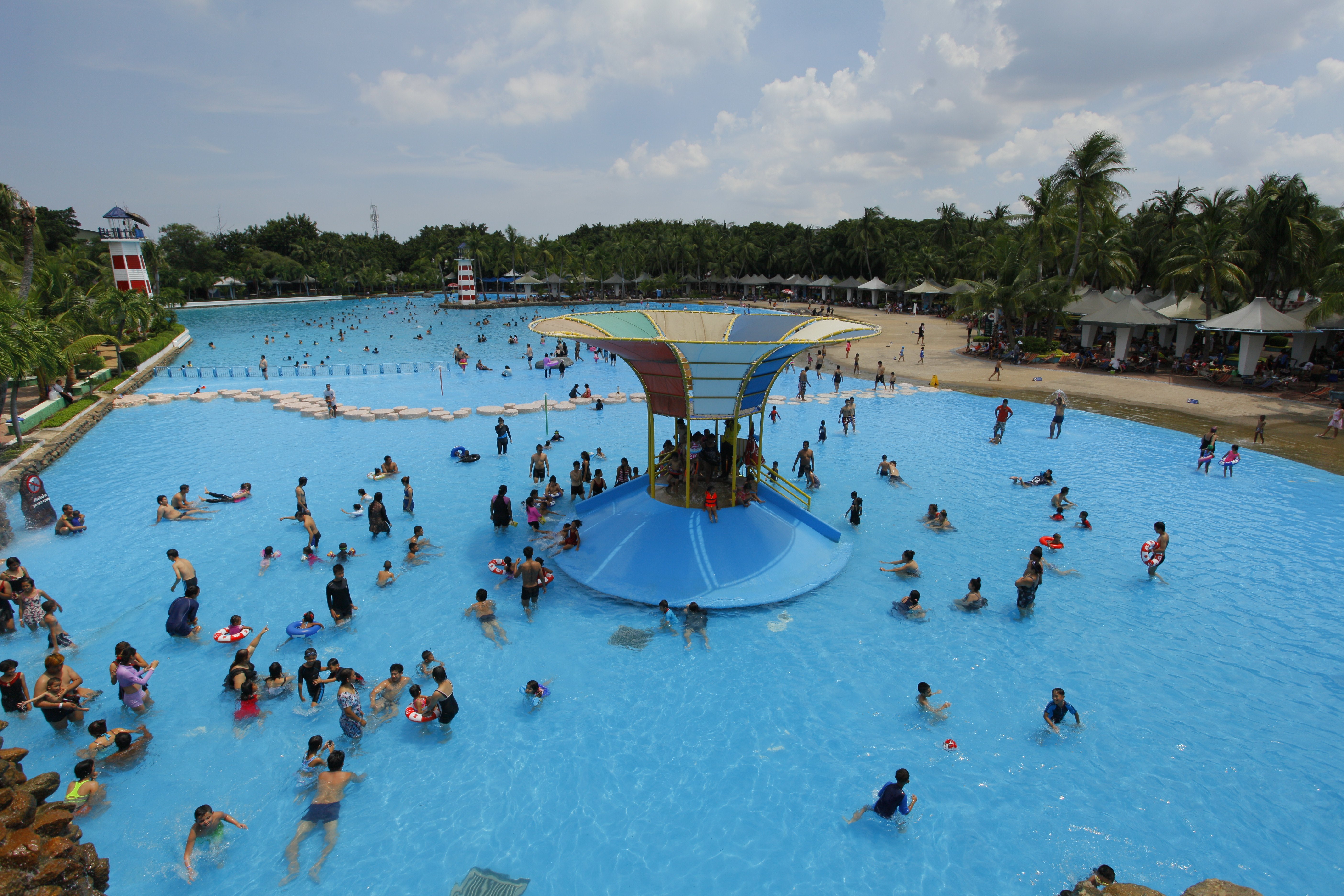 園內有趣的設施包括人造海和滑梯。人造海面積約1.3萬平方米,最深處約2米,岸邊設有人造礁石。機器製造出層層波浪,浪高達1米,前呼後擁,猶如真實的海景。兩條並排的水滑梯建於環形泳池中,遊客可從7層樓高的滑梯頂端高速滑入泳池,非常刺激。除了長達500米的螺旋型水上滑梯外,還有海盜船、環形水上爬犁等驚險遊樂項目。此外,園內還經常在一間圓形劇場中安排泰國文化表演。