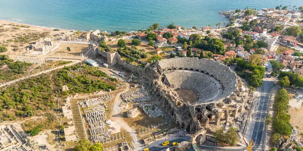 Side Ancient City位於土耳其南部的地中海沿岸,是個充滿歷史魅力的古城遺址,吸引許多遊客前來探索。這個古城曾是重要的貿易和文化中心,擁有豐富的希臘、羅馬和拜占庭遺跡。遊客可以漫步在保存完好的古羅馬劇場,欣賞其宏偉的建築結構,該劇院是古城的標誌性建築之一。