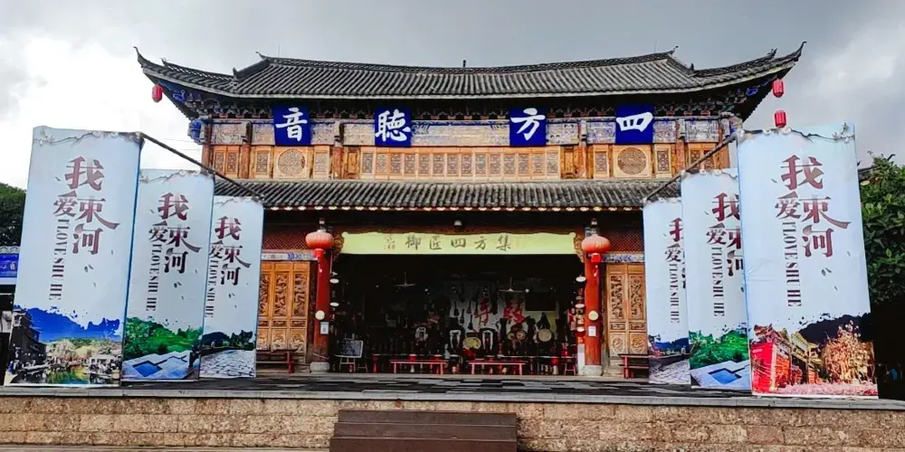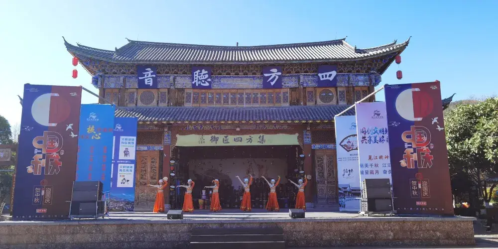 每年在束河的各項大型活動如雪山音樂節、七夕節、模特大賽、篝火晚會及各類文藝演出均在此進行。四方聽音也體現了納西民族傾聽東西南北之音,吸收世間文化精髓,包容各民族之博大胸懷。