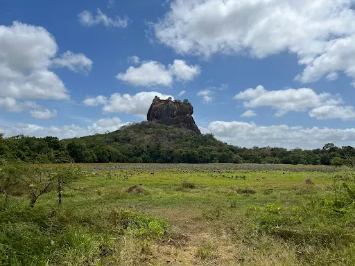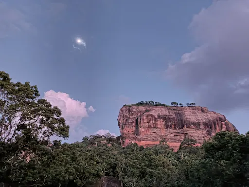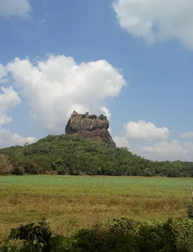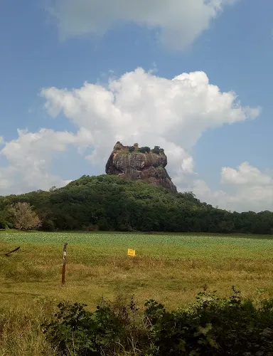斯里蘭卡錫吉里耶的獅子巖,是一座花了18年時間真真實實構築在橘紅色巨岩上的空中宮殿,被譽為世界第八大奇蹟,是斯里蘭卡「文化金三角」的頂點。起初巨岩被建造得如同一頭巨大猛獅的模樣,如今獅頭早已風化掉落,只剩下獅身。獅子巖的範圍比較大,包括護城河、巨大的岩石,以及岩石頂端的斷層面殘垣。