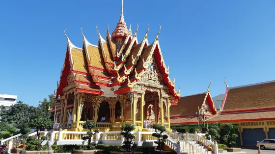 4.8 分72 則評價距離市中心 距離市中心9.1公里這是一個歷史悠久的寺廟,寺廟前沖上刻有泰式因陀羅圖案,屋頂採用了彩色琉璃瓦,大殿旁邊有一個觀音菩薩園。