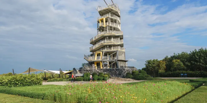 農場方面,這裡有一望無際的稻田,有超過兩百畝的烏龍茶園、葡萄園、水果田、和各種蔬菜的溫室;公園方面,這裡種植著各色鮮花,有一片薰衣草田,也有一個湖泊;動物園方面,這裡圈養著幾隻長頸鹿和斑馬,遊客可以給它們餵食、陪他們玩耍。
