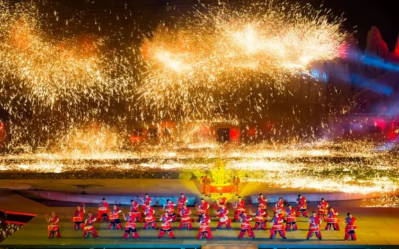 司徒小鎮,重現了山西傳統的市井生活,來到小鎮,能夠體驗到熱情奔放的當地民俗,品嚐到味道可口的本地美食。小鎮上的千年絕技“打鐵花”實景演出更值得一看。春節是司徒小鎮的黃金遊玩期,漫步在充滿著古意的小鎮上,高高懸掛的燈籠營造出濃厚的節日氣氛,還有舞獅、舞龍、踩高蹺、跑旱船等民俗表演。司徒小鎮上還有“打鐵花”團隊,夜幕降臨時,上千人同時打鐵花,朵朵鐵花就像天女散花一樣,非常神奇。