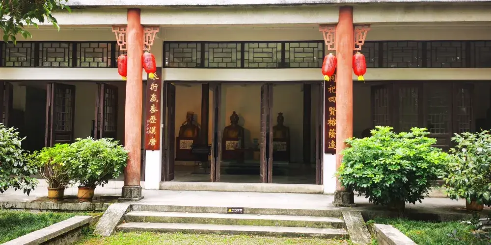 四賢祠全部建築面積為743平方米,主體建築基本上保留了原有民族形式。院內增建了迴廊、住房、售貨廳及東西院門等。