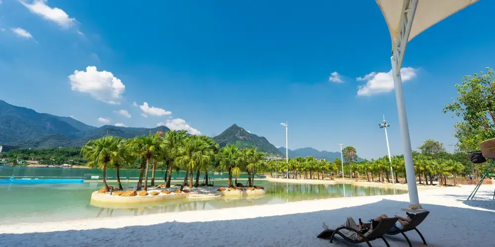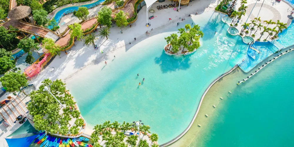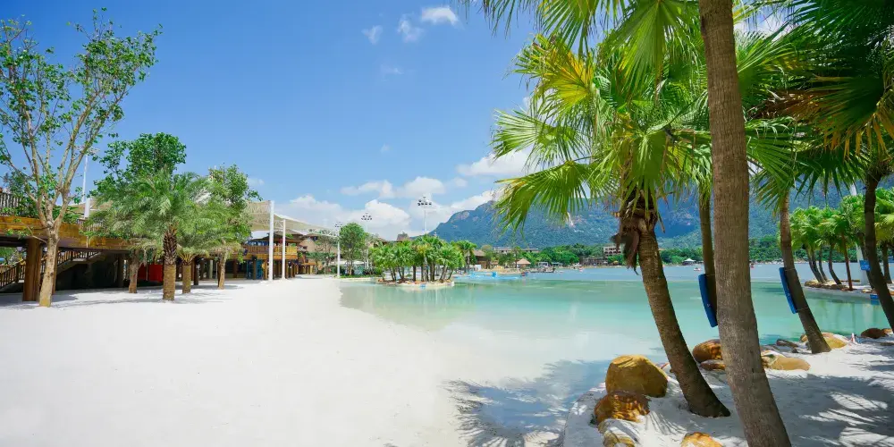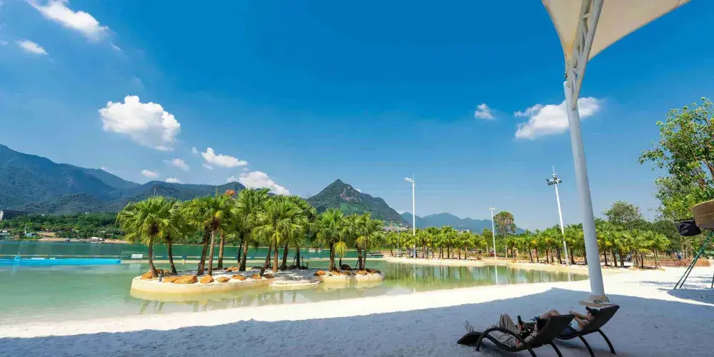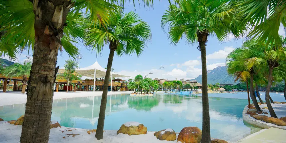 【神秘海島區】:區域內涵蓋海神魔力碗、水域迷城、峰迴路轉、螺旋滑梯、尖峰極速滑梯、海盜灣兒童戲水池、漂流河、無邊際泳池、椰林沙灘等數十種水上運動遊戲,大人細路都可以喺度搵到自己嘅親水玩法,仲可以欣賞湖岸演藝。