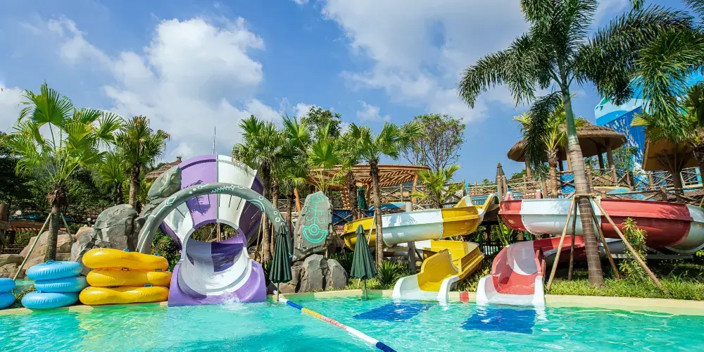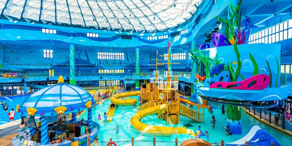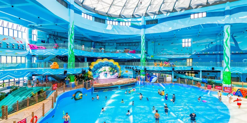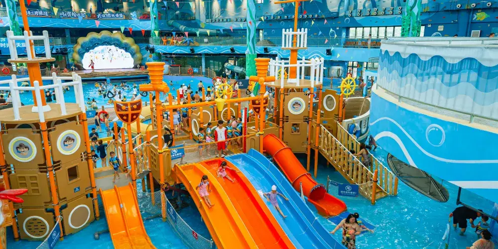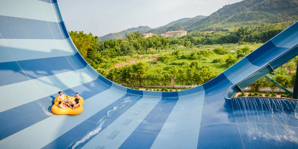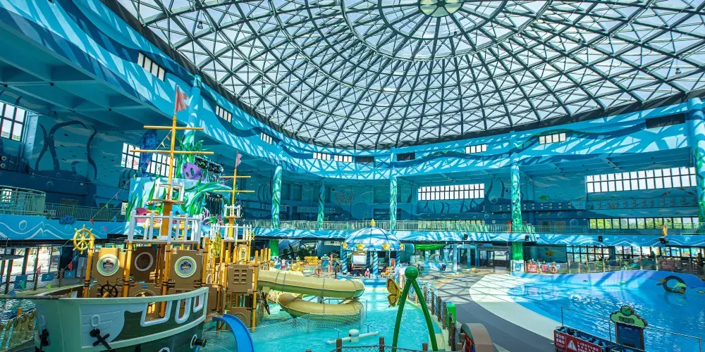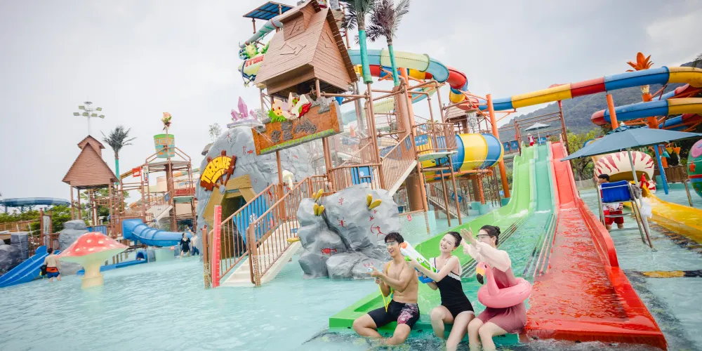 【古海森林區】:擁有三層超大玩樂空間嘅室內水上樂園——古海水王國,遊客一年四季都可以盡情暢玩。室外設有繽紛水屋、巨洪峽漂流,以及貫穿東西兩區嘅空中超長水上過山車等項目,喺旋轉蜿蜒嘅滑道中感受水嘅魅力!
