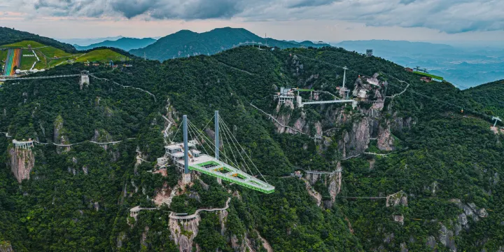 天空之階:聳立於海拔1168米的懸崖之上,向外延伸80.9米,呈獨特的A字型。全透明的玻璃橋身澄澈如鏡,彷彿將天空與山巔無縫連接,構築出一片如夢似幻的天空之境。當您踏上天空之階,瞬間猶如置身浩瀚雲端,腳下是深不見底的萬丈深淵,四周則是廣袤無垠的蒼穹,每邁出一步,心跳都隨之加速,這種遠離平地、突破平凡的刺激感,定會讓您刻骨銘心。