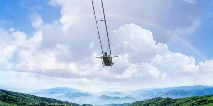 懸崖鞦韆:臨崖而設的鞦韆群,為您提供4米、6米、8米、10米多種擺盪長度選擇。坐上鞦韆,在狂野的山間用力一蕩,剎那間,「命懸一線」的驚險感撲面而來,身體隨著鞦韆的大幅度擺動在高空來回飛舞,耳邊呼嘯而過的風聲彷彿是勇氣的讚歌。在這盡情釋放的過程中,您能深切感受到生命的蓬勃律動,內心的壓力也隨之煙消雲散。