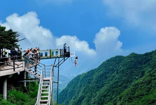 懸崖笨豬跳:火到出圈的「窩囊版笨豬跳」,是一種新型的「溫柔版」笨豬跳項目,於2023年升級改造推出,旨在讓更多人能夠跨越心理障礙,體驗笨豬跳的魅力。笨豬跳台高度約為二三十米,下降速度較慢,從跳出到落地約需10秒至15秒,通過調整繩索的彈性與下降速度,讓繩索平穩降落,降低了傳統笨豬跳的恐懼感和刺激性。雖然外觀上不如傳統笨豬跳驚險,但跳下去的瞬間仍能感受到失重和心跳加速,讓遊客在相對安全的情況下體驗笨豬跳的樂趣。