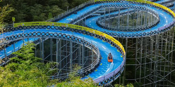 天路飛車大洋彼岸的超酷玩法,坐上2200米滑板車,一層層綠色的「竹浪」向你奔赴而來,風馳電掣,體驗速度與高度的雙重刺激。