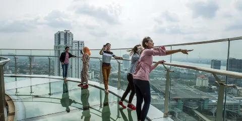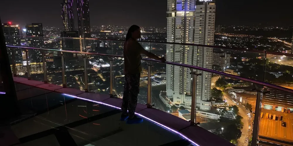 如果你在馬來西亞或新加坡尋找獨特的體驗,柔佛巴魯(新山)的Skyscape Johor Bahru一定會讓你難忘!作為城市空中娛樂空間,Skyscape的天空橋觀景台高達149米,全玻璃地板可俯瞰馬來西亞與新加坡的壯麗景觀。拍幾張令人瞠目結舌的照片後,別忘了體驗其他項目:在迷你影院觀影、用VR設備感受靈魂出竅的刺激,或像孩子一樣玩互動地板遊戲。