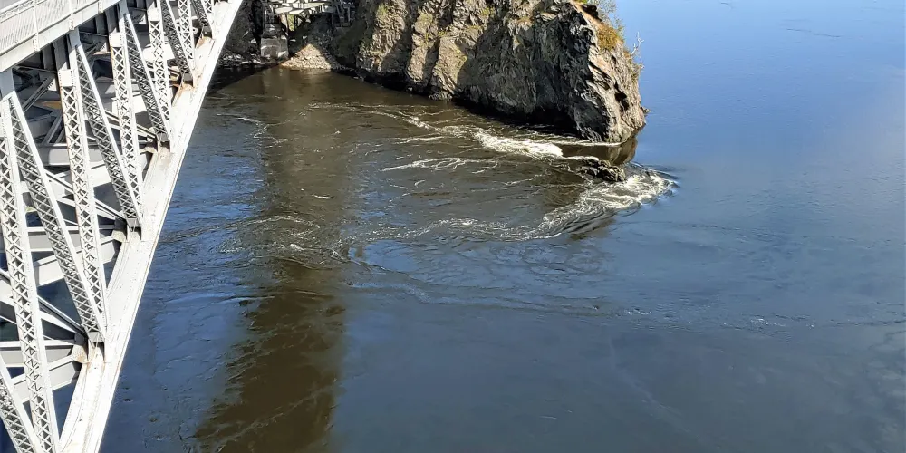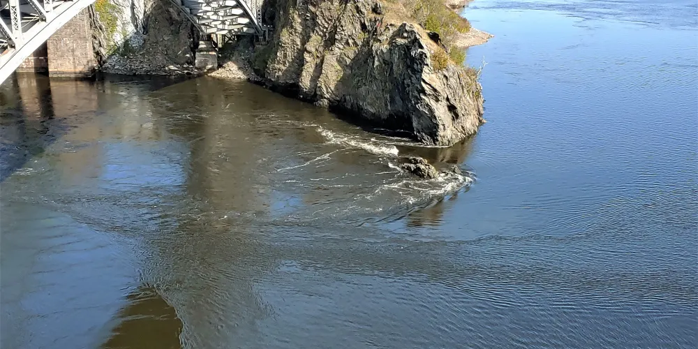 逆流瀑布位於聖約翰河口、靠近芬迪灣處。河水流入芬迪灣一百三十七公尺的狹窄處,在海水低潮時河水比海平面高出五公尺,洶湧的注入海中;但在海水漲潮時,芬迪灣的水面又較聖約翰河水面高出約四公尺,河水於是被推擠往上遊急速逆流,因此形成這種難得一見的大自然奇景,這樣周而復始,每天兩次,吸引著人們專門到這裡來看逆流。這也是聖約翰的很贊觀光賣點,可開車或參加當地旅行團前往逆流瀑布橋西邊欣賞。