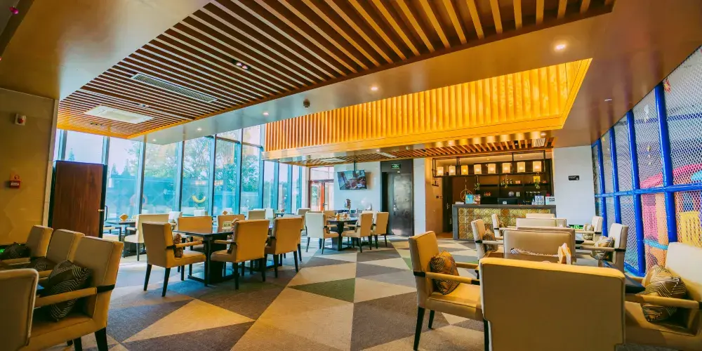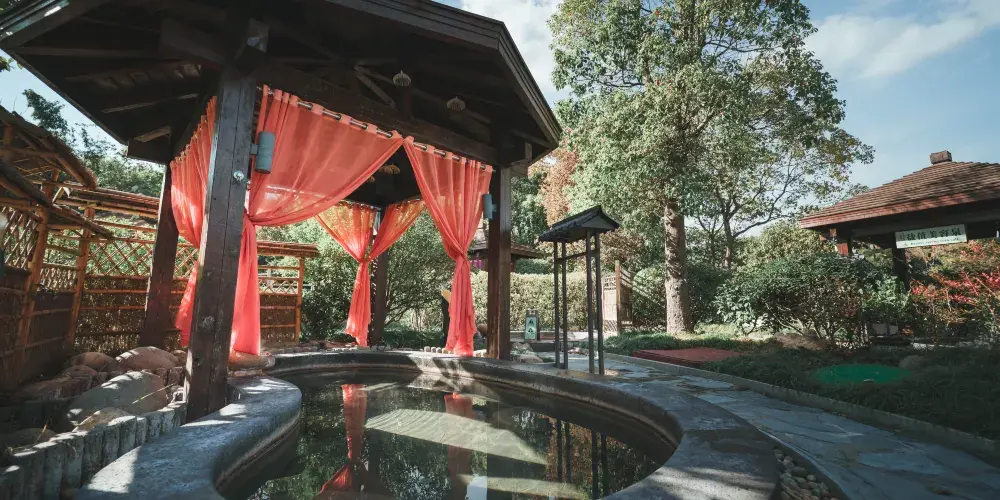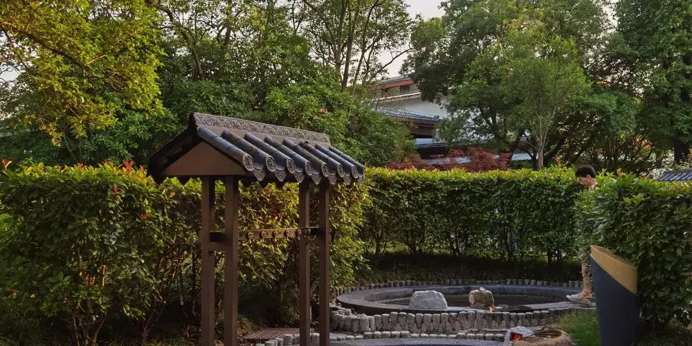 溫泉區分為室外溫泉及室內溫泉,共有形態功能各異的溫泉池30個,另設有電器鈦房、鹽療房、乾蒸房、地熱帶、冰療房、健身瑜伽房、無邊網紅戲水池(夏季開放)、在野C位咖啡館、萌寵樂園、親水灣親子區等配套設施。溫泉區休息大廳設有棋牌室、保健按摩、休息包廂、真味坊餐廳、電玩房等,讓您浸完溫泉後可以放鬆心情,享受舒適空間。