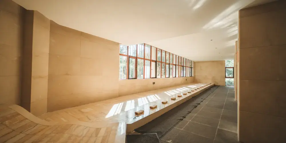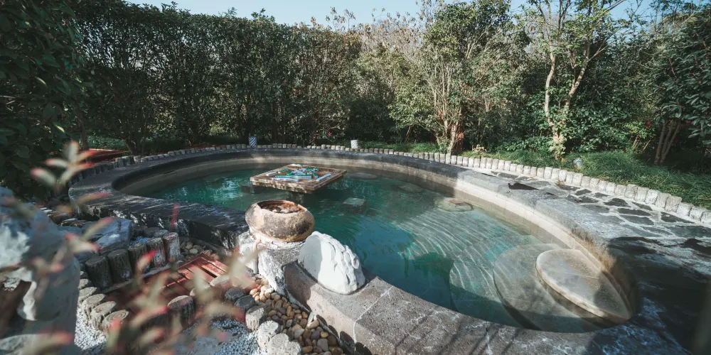 這裡溫泉的出水溫度達到70℃,富含多種優質微量元素和礦物質,屬於國內天然偏矽酸·鋰溫泉。