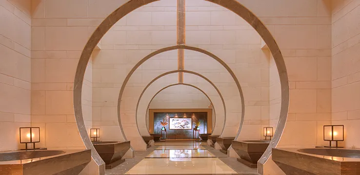 揚州,是「中國溫泉之城」,溫泉休閒旅遊也是揚州旅遊的一大亮點。瘦西湖湖畔,草木林間,深藏著來自地下2000多米的天然溫泉,氤氳著自然舒適的度假氛圍。瘦西湖溫泉度假村,環境優美,悠然自在,曲徑通幽的園林風格,種類繁多、功效各異的30多個溫泉泡池依勢而建,錯落有致,泉池、步道、水景……散落在林間相映成趣。